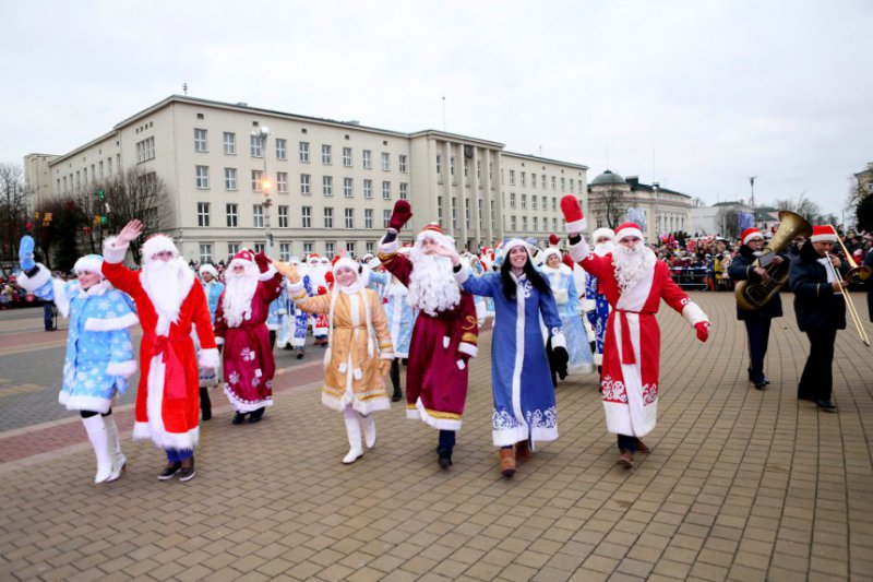 КОЗЛЯКОВСЬКОЇ: брестські Діди Морози та Снігуроньки крокують площею Леніна.