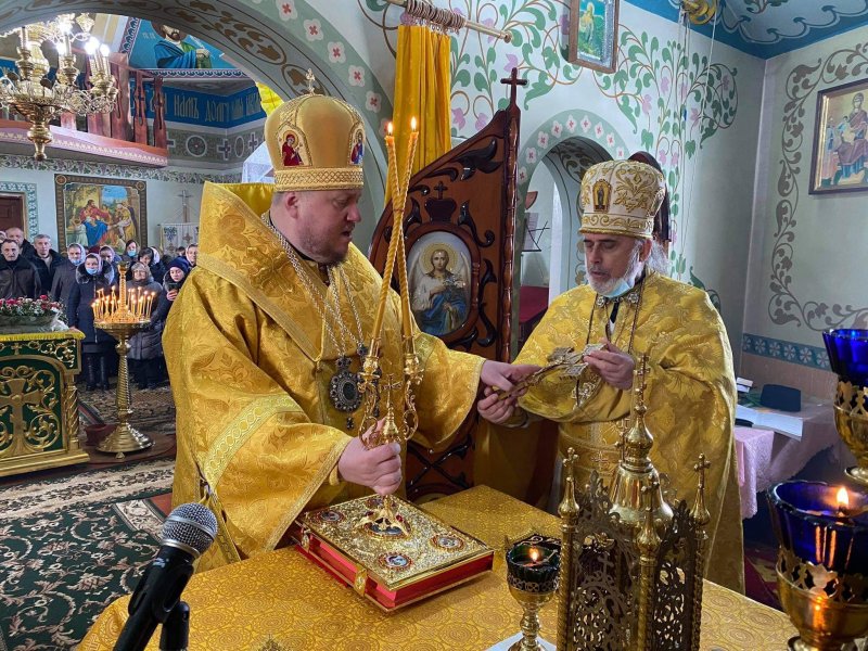 владика Матфей (зліва) проводить урочисте Богослужіння в храмі с. Галинівка.