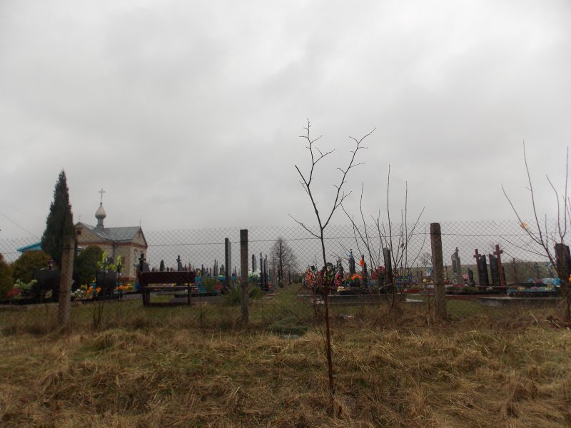 неподалік сільської церковці, біля його рідних – сина Володимира та дружини Олександри.