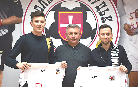 фото прес-служби ФК «Волинь»: Євген Курко, Валентин Кошельник і Євген Заричнюк.