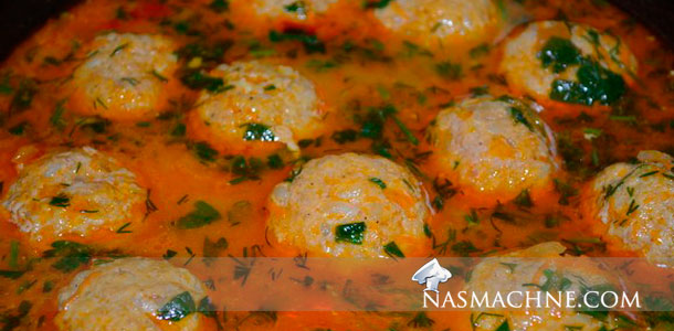 запікання виливаємо готовий соус. Вологими руками ліпимо невеликого розміру тюфтельки