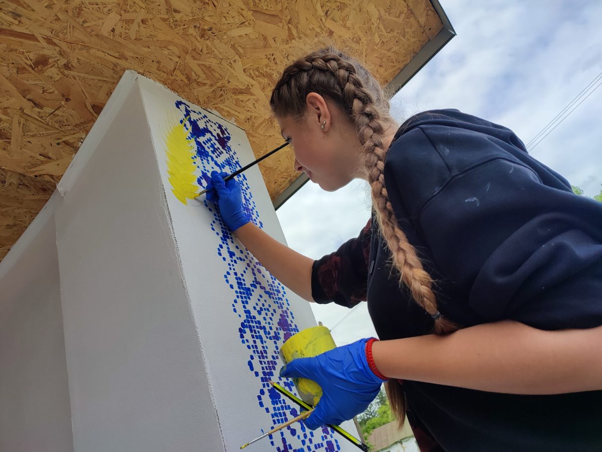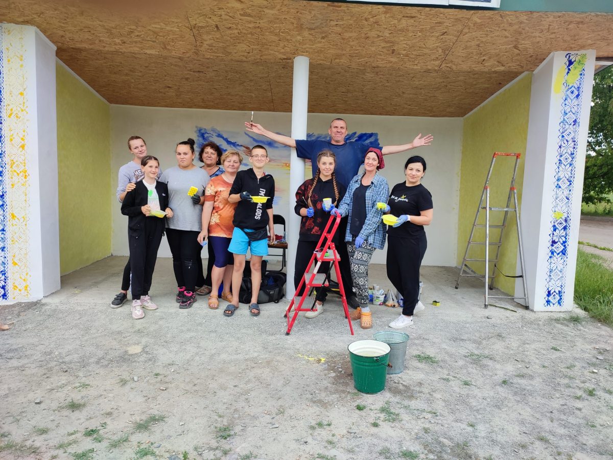 Перетворити зупинку на патріотичний об’єкт взявся художник-переселенець із Курахового Володимир Яницький разом із дружиною Ганною. Долучилися до цієї справи і місцеві мешканці – активна молодь, культпрацівники, депутатка Валентина Гогой, разом працювали протягом трьох днів.