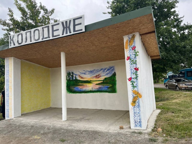 У с. Колодеже Городищенської громади художник-переселенець разом із місцевими активістами розмалювали автобусну зупинку. Орнамент вишиванки, колосся, маки, захід сонця, річка та ліс – такі прекрасні українські символи та краєвиди у вигляді малюнків тепер прикрашають споруду в центрі села.