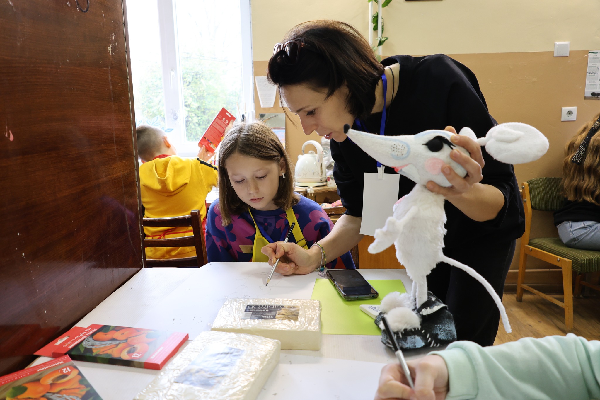 Як повідомляє обласний театр ляльок, днями вже відбулось два тематичні воркшопи. Під керівництвом майстрині з виготовлення ляльок та за участю психолога, діти вчились створювати ескізи власної ляльки, відливали гіпсові форми, надавали їй об’єму за допомогою папʼє-маше та розфарбовували.