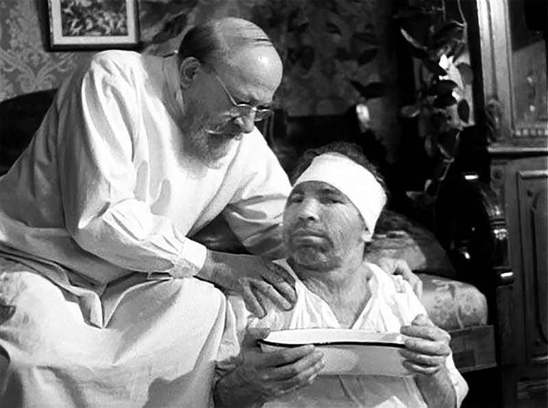 На фото: професор Пилип Преображенський і його пацієнт – собака Шарік, перетворена на більшовицьку людину Клима Чугункіна.