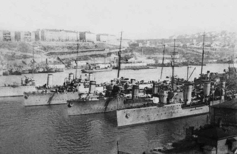 На фото з архіву: кораблі Чорноморського флоту в бухті Нововросійська, знищені в червні 1918 р. за наказом більшовиків, щоб не бути врятованими Центральною радою УНР.