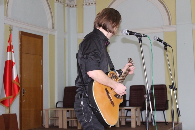 До привітання долучився і другокурсник Михайло Кашкаров. Він виконав англомовну пісню власного авторства.
