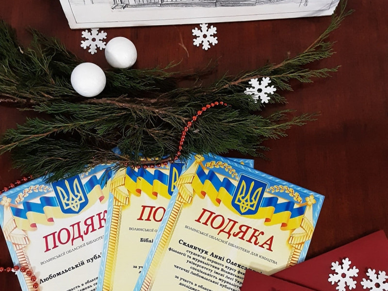 Від Волинської обласної бібліотеки для юнацтва директорка установи нагородила подяками та сертифікатами на книги Любомльську публічну бібліотеку за дослідження «Свято-Георгіївська церква в м. Любомль».