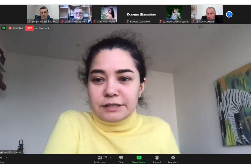 На фото Служби інформації НСЖУ: Севгіль Мусаєва розповідаю про кримські