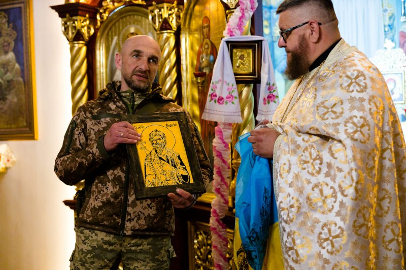Подарунок духовному наставнику воїн готував з нагоди дня Ангела ще у грудні, однак особисто вручити образ зміг лише зараз.