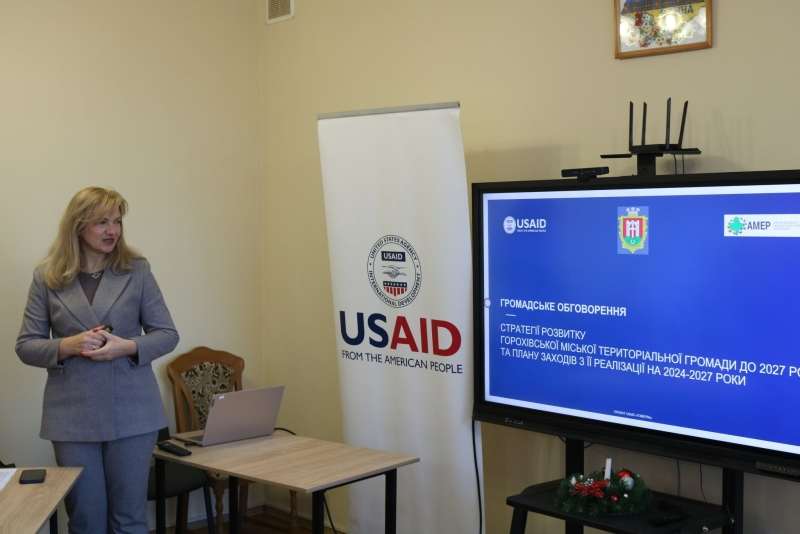 Експерткапроєкту Ірина Сторонянська представила напрацьовані проєкти Стратегії розвитку Горохівської територіальної громади на період до 2027 року та Плану заходів з її реалізації на 2024-2027 роки.