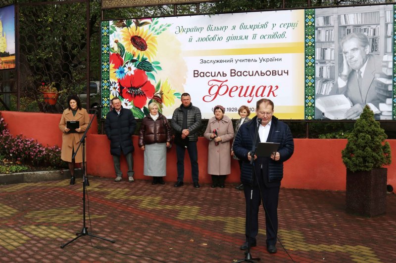 14 листопада на центральній площі міста відбулося відкриття банера, як знак шани Заслуженому учителю України, Василю Васильовичу Фещаку.