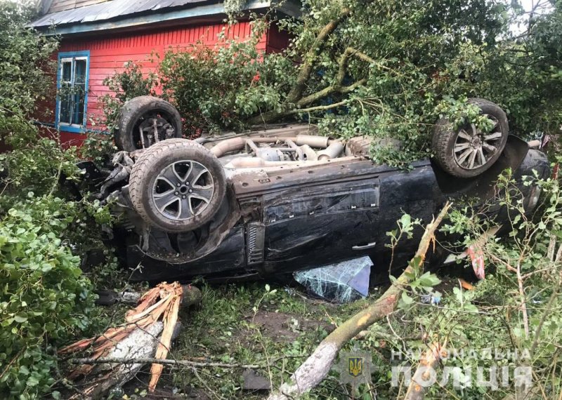 приватного будинку, врізався у дерево та перекинувся.