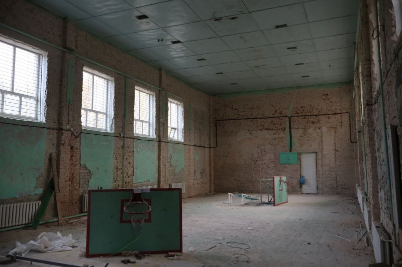 Даний ремонт передбачає укріплення будівлі спортзалу металевими конструкціями, заміну покрівельного матеріалу, утеплення фасаду, внутрішні роботи.
