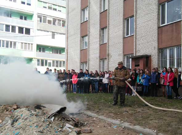 спостерігали за приборканням імітованої пожежі учасниками добровільної пожежної