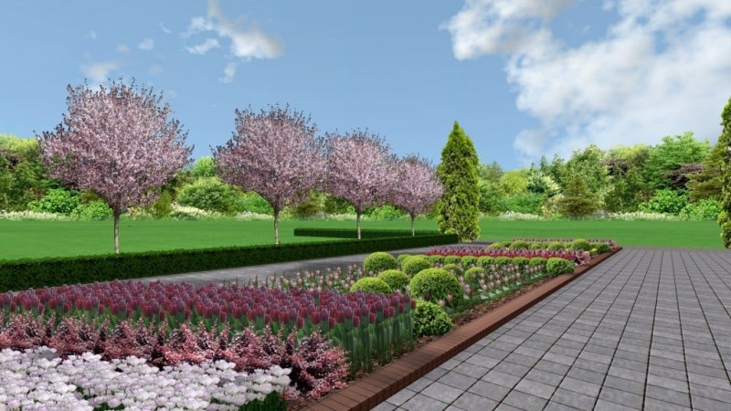 Весною тут мають розпуститись півтори тисячі тюльпанів, вздовж доріжок — декоративна слива Нігра, влітку уже квітнутимуть лілейник, восени – гортензії.