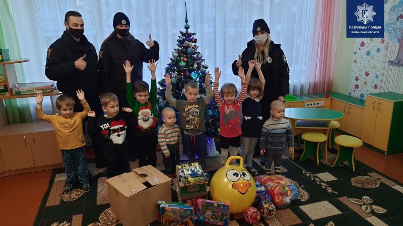 від волинських патрульних поліцейських солодощі, канцелярію та іграшки, які