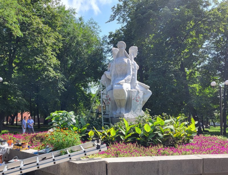 У парку культури і відпочинку імені Лесі Українки розпочали оновлювати скульптуру трьох дівчат, які уособлювали дружбу народів.