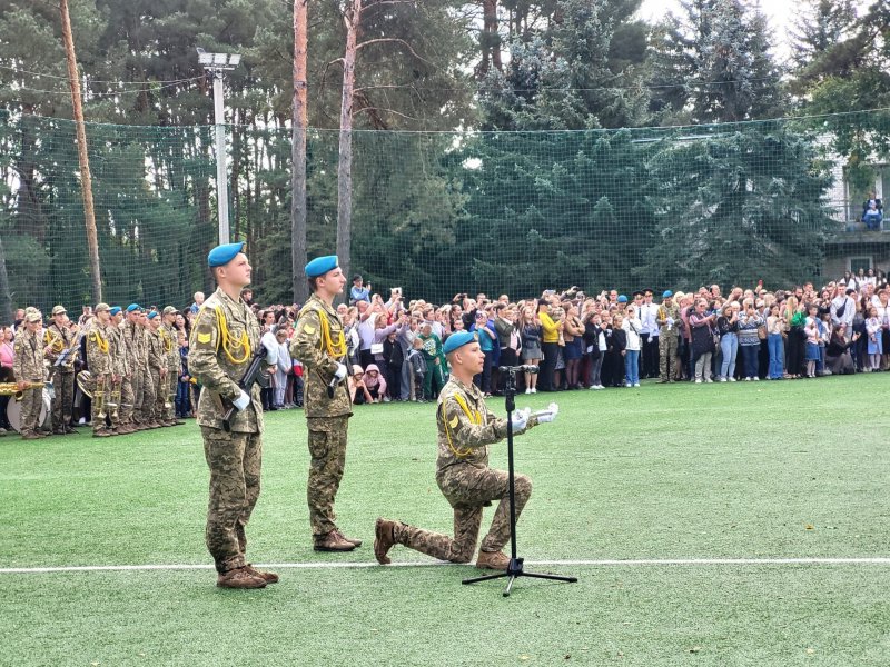 Урочиста мить. Злагоджено. Чітко. Впевнено. Українські хлопці і дівчата складають присягу вірно та самовіддано служити Батьківщині. Потому вони отримали посвідчення ліцеїста.
