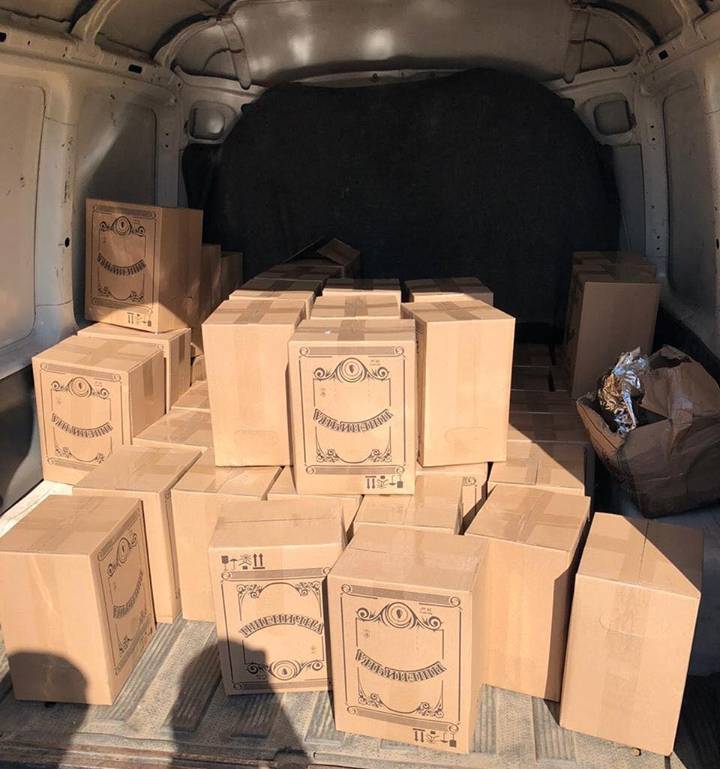 виявлено та вилучено 52 ящики, заповнені полімерними пакетами із спиртовмісними