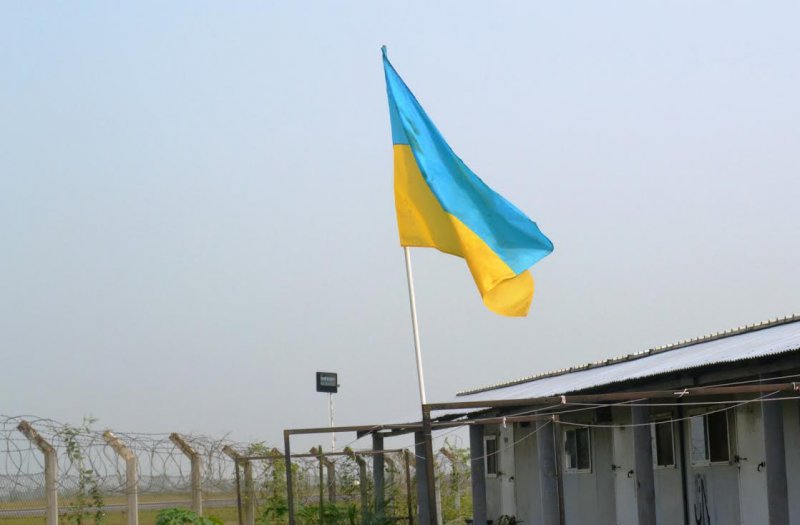 прапором на території базового табору зі сторони злітно-посадкової смуги
