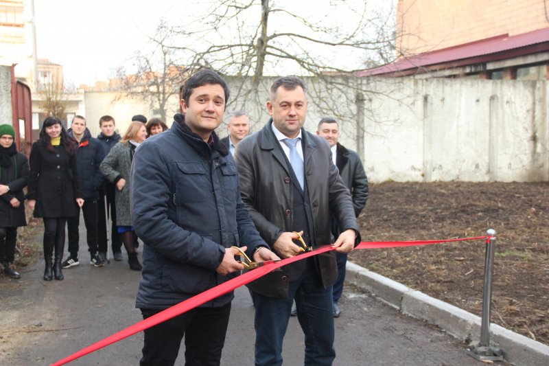 На фото Оксани КАШТАЛЯН: ректор Петро Савчук та директор з техпитань Богдан Сухнацький розрізають стрічку.