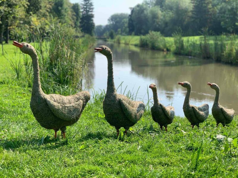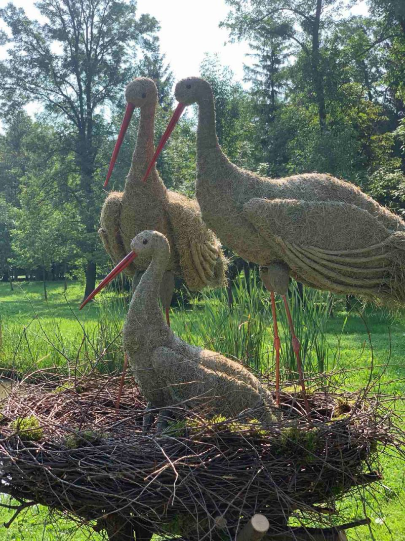 Роботи виконані із лісової трави, сформовані з макетів птахів: лелеки та гуси, які є оберегом родинного затишку, добробуту і злагоди, символізують любов до рідної землі, до Батьківщини …