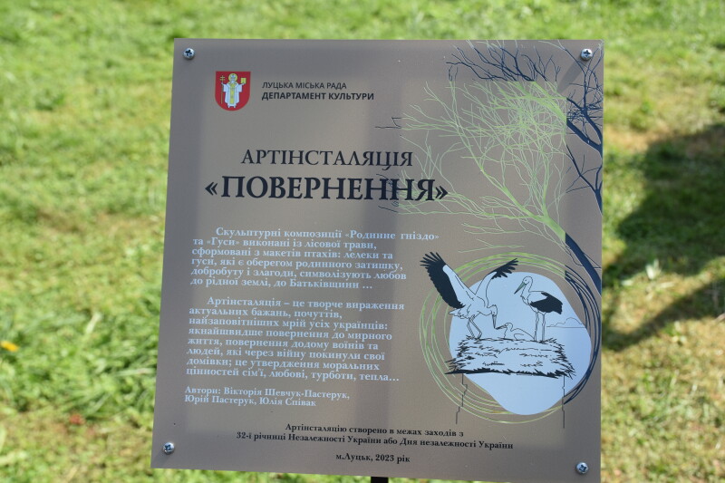 У рамках заходів з відзначення 32-ї річниці Незалежності України у парку культури та відпочинку імені Лесі Українки встановлено артінсталяцію «Повернення», яку складають скульптурні композиції «Родинне гніздо» та «Гуси».