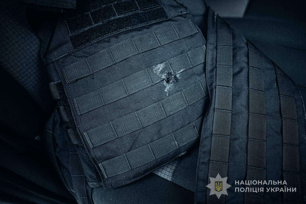 На щастя, дріб застряг у бронежилеті поліцейського. Поліцейські затримали чоловіка та викликали слідчо-оперативну групу.