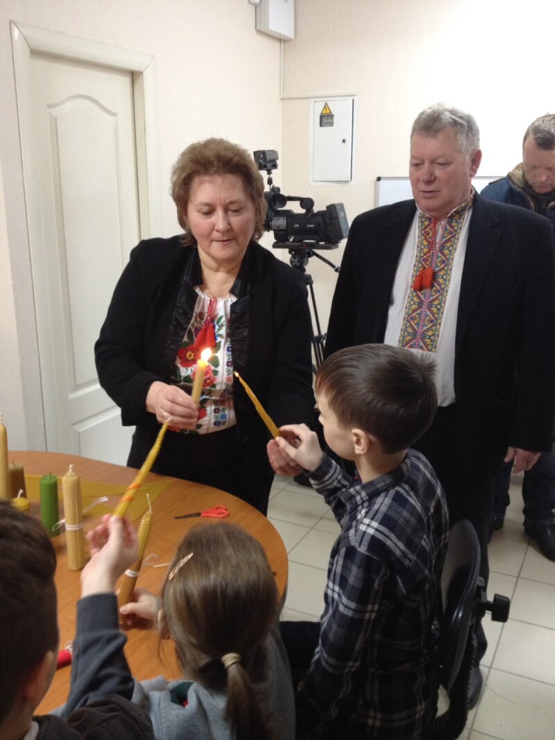 Напередодні свята Стрітеня Господнього учасники майстер-класу виготовляли свічку з медової вощини, адже справжня стрітенська свічка має бути зроблена з чистого бджолиного воску. Пані Марія розповіла цікаві факти про бджіл, їх спосіб життя, продукти бджільництва.