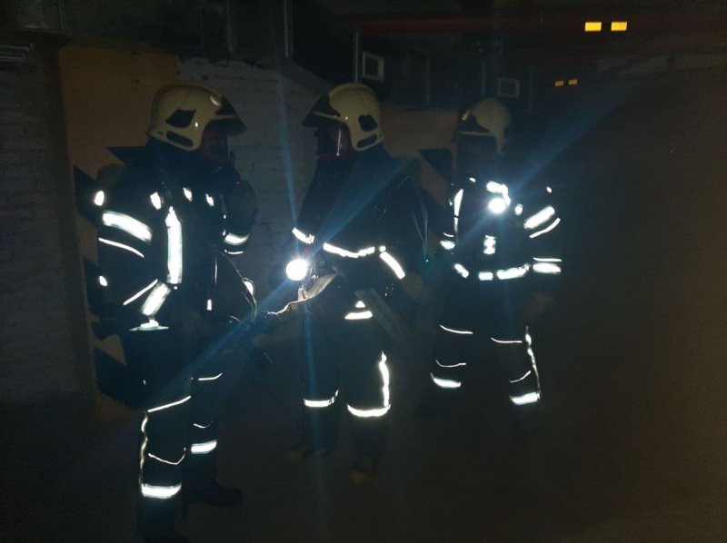 гасіння пожежі автомобіля на паркінгу в підвальному поверсі 2 потужних пінних