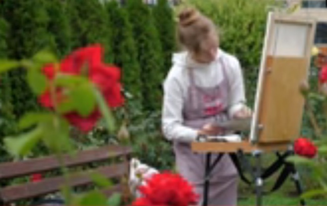 творчий пленер, який влаштували мисткині у трояндовому саду біля кафедрального