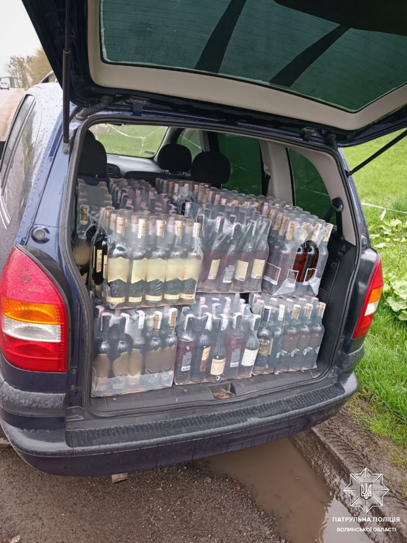 В багажному відділенні транспортного засобу патрульні виявили пляшки з різними алкогольними напоями різних торгових марок. Усього — 27 ящиків. Акцизні марки на пляшках були сумнівного походження, водій же не зміг чітко пояснити, де взяв продукцію, та не надав охоронцям порядку жодних документів на неї.
