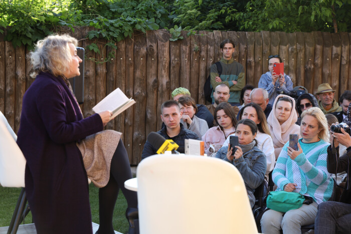 Під час зустрічі письменниця окремо подякувала видавцям з Харкова, які, попри важку ситуацію в місті, зуміли видати книгу, та зачитала уривок тексту “Вартові руїни. З біографії одного двору”, в якому описує свій будинок на вулиці Винниченка.