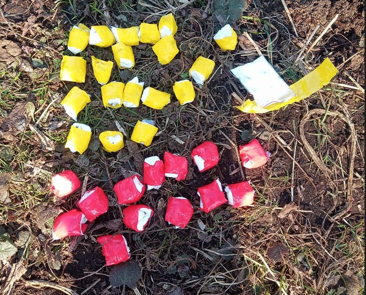 У місцевому парку чоловік викопав поліетиленовий пакет у якому знаходилося 34 готових закладки з речовиною, схожою на Альфа-PVP. У подальшому зловмисник мав їх розкласти у різних місцях для потенційних покупців.