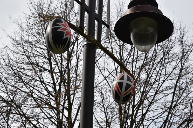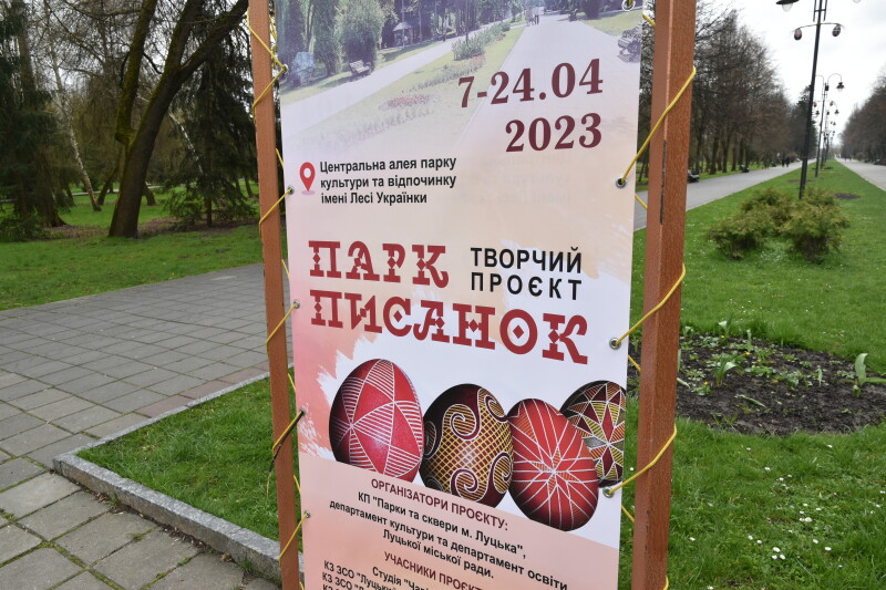 Упродовж місяця юні художники розписували макети писанок у традиційні волинські орнаменти. Виробів назбиралося понад сотню і нині вони прикрашають не тільки Центральну алею парку, а й найвіддаленіші його куточки. Дякуючи комунальникам, кольорові пасхальні яйця розвісили на ліхтарях, тож їх добре видно здалеку. Подекуди на писанках закріпили й вербові гілочки – символи здоров’я, плодовитості та швидкого росту.