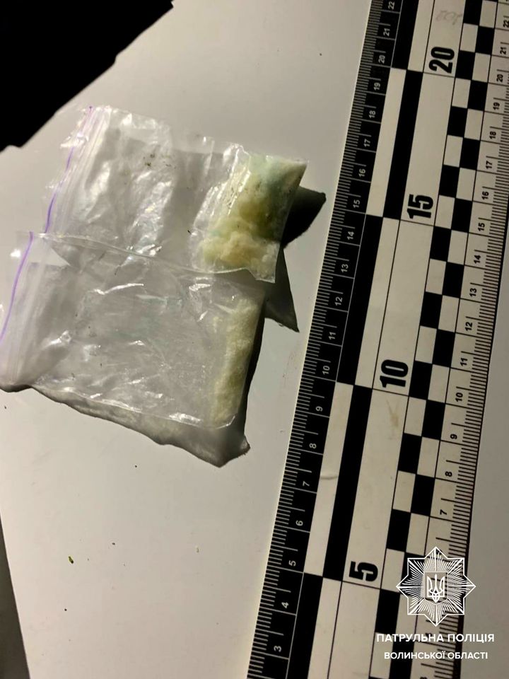Під час спілкування громадянин помітно нервував та намагався якомога швидше піти. Тож у поліцейських виникли підозри, що чоловік може мати з собою заборонені речовини. І недарма — під час поверхневої перевірки в нього виявили два зіп-пакети з кристалічною речовиною та два паперові згортки з речовиною рослинного походження.