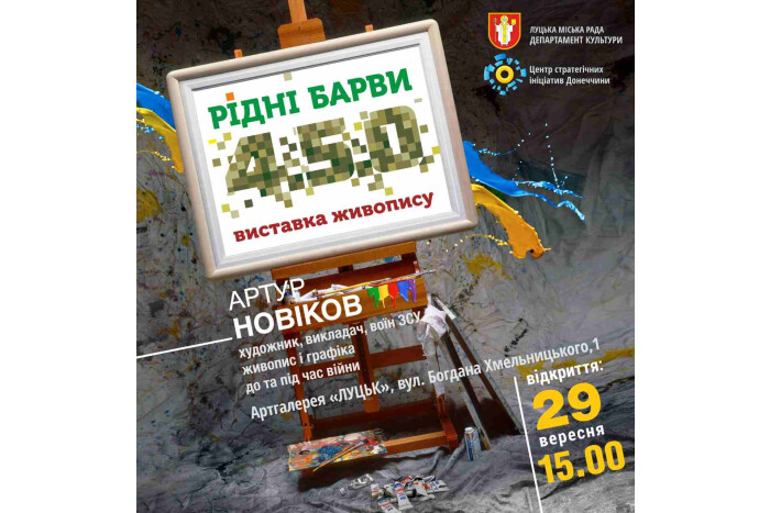 У межах культурно-мистецьких заходів з відзначення Дня захисників і захисниць України 29 вересня о 15.00 в Артгалереї «Луцьк» відбудеться презентація виставки живопису художника з м. Краматорська Донецької області Артура Новікова «Рідні барви 4.5.0».