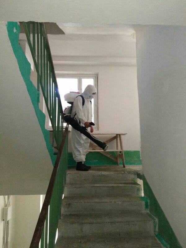 дезінфекцію під’їздів 4-х багатоквартирних будинків на вулиці Кравчука та