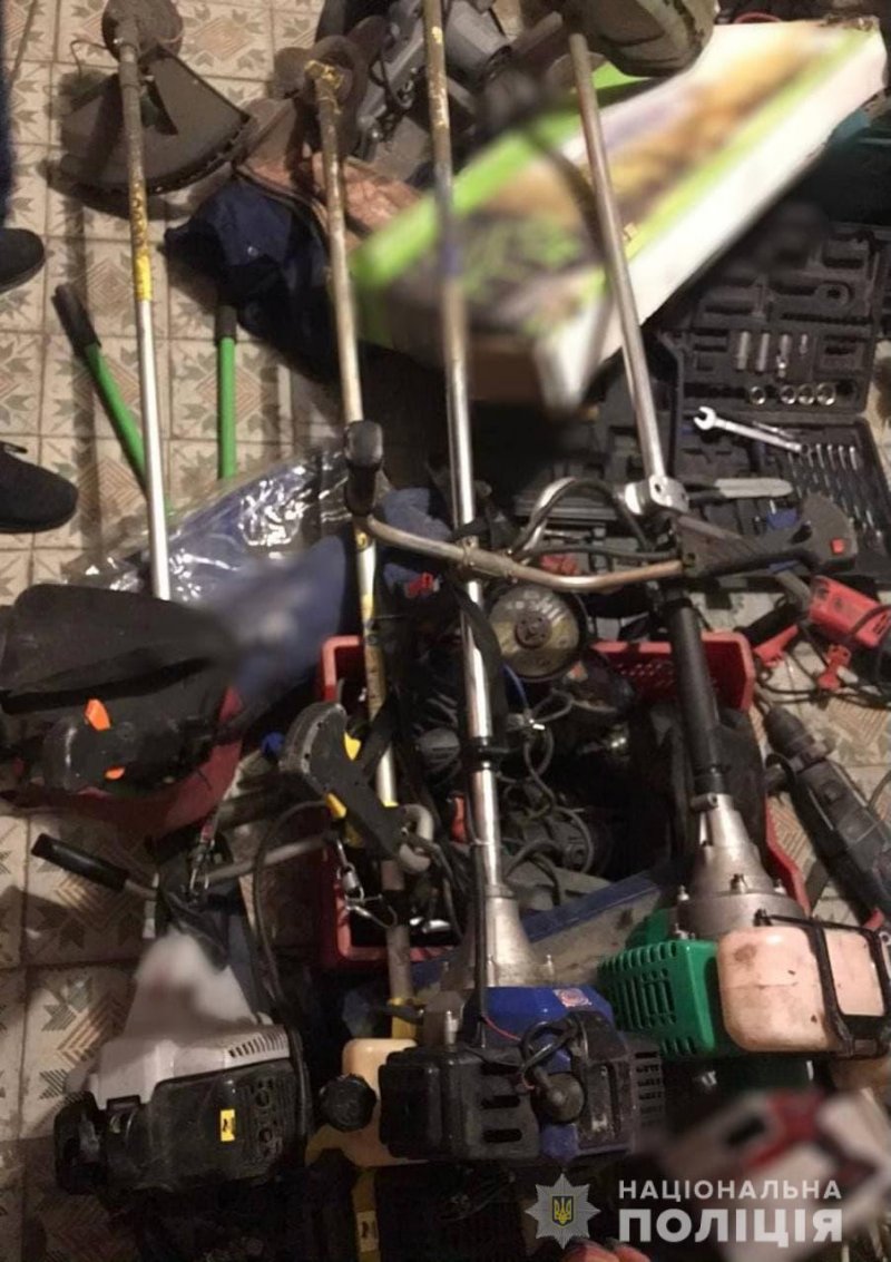 електроінструментів, кабелі, відмички, рукавички, одяг, радіостанції, засоби
