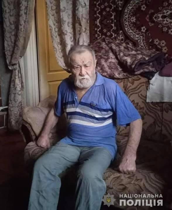 Прикмети: на вигляд – близько 78 років, зріст близько 170-175 см, середньої тілобудови, волосся сиве, середньої довжини, сиві вуса, очі темні, погано говорить та пересувається з тростиною.