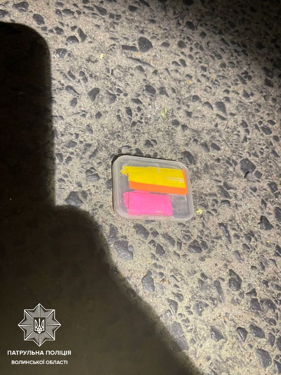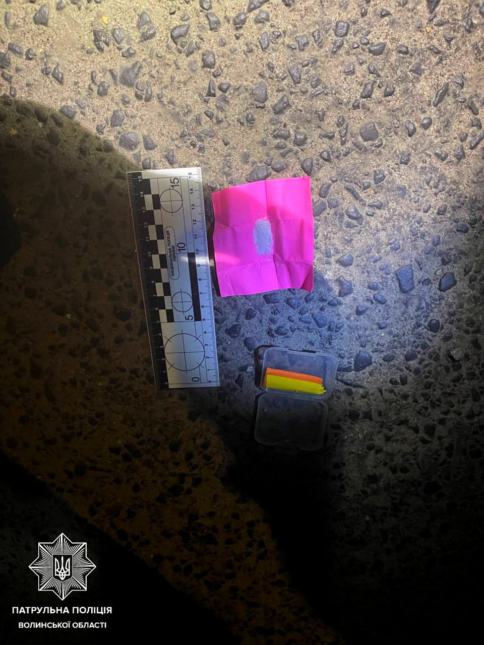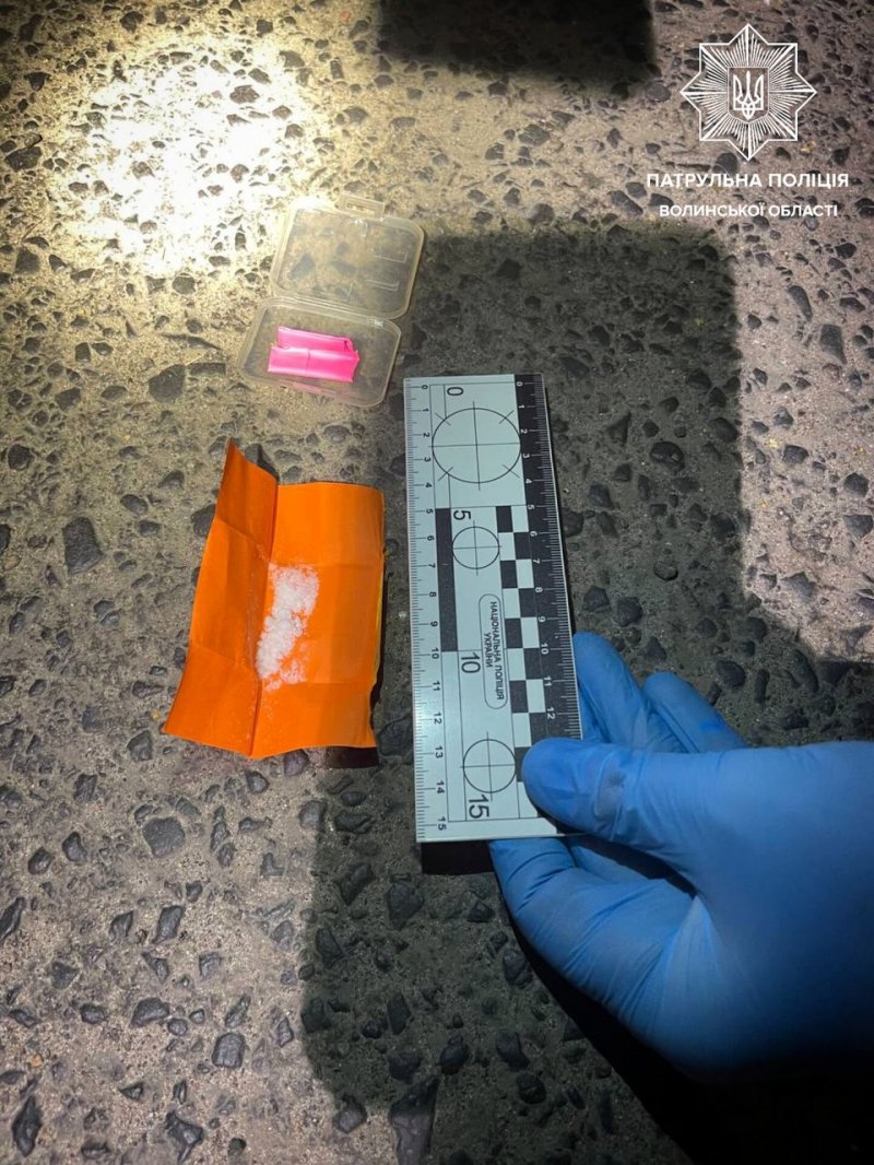 Поліцейські вирішили також провести щодо керманича поверхневу перевірку, під час якої він викинув на землю пластикову коробочку з двома згортками. У них містилася біла кристалічна речовина, що ззовні була схожа на наркотичну.
