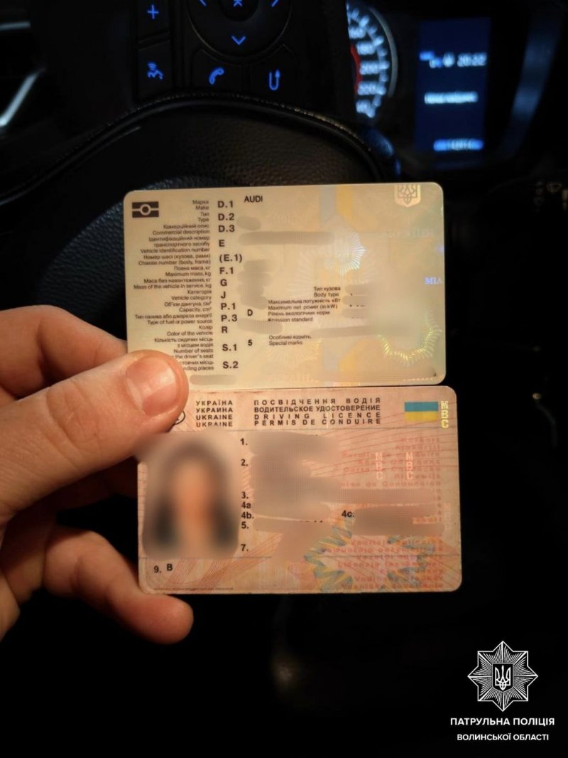 Було прийняте рішення зупинити авто, виявилисося, що за його кермом перебувала 38-річна жінка. Під час перевірки документів поліцейські виявили, що її водійське посвідчення має ознаки підробки. Згідно з серійним номером документ був виданий зовсім на іншу особу. Сама ж громадянка ніколи не отримувала посвідчення водія.
