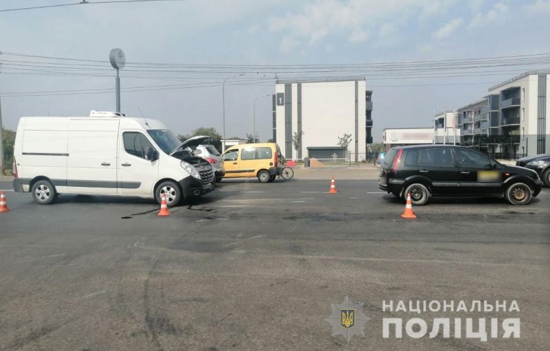 центрі. Вантажівка Renault Master врізалася у легковий автомобіль Ford Fusion.