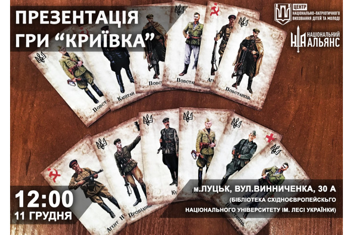 11 грудня в Луцьку відбудеться презентація гри «Криївка».