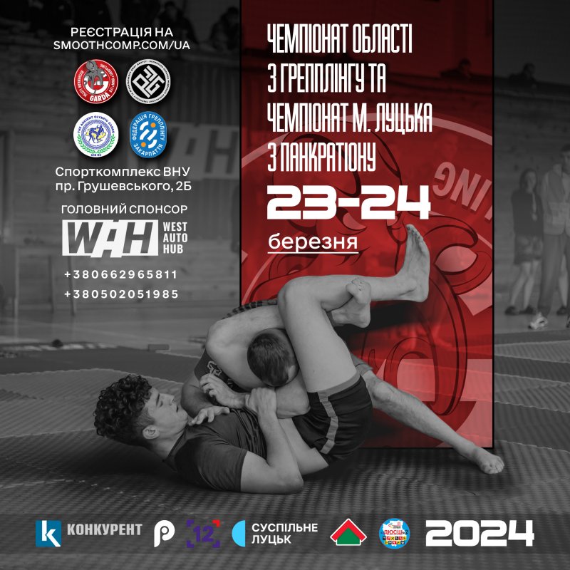 23-24 березня у Луцьку в спортивному комплексі ВНУ імені Лесі Українки відбудуться Чемпіонат Волині з грепплінгу та Чемпіонат Луцька з панкратіону серед дітей та дорослих. Це перші Чемпіонати у 2024-му році з цих видів спорту на Волині.