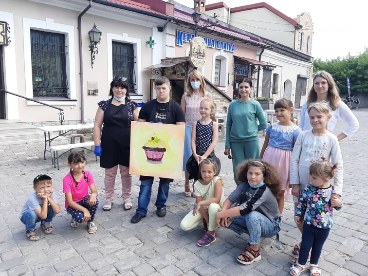 Решта діток з захопленням малювали спільну картину «Сонячний капкейк» з Наталією Грабовецькою засновницею галереї «OBRAZ&GRABOVETSKA», яку по завершенню заходу на знак вдячності за гостинність подарували на згадку працівникам кав’ярні. Спільна робота пробуджує інтерес та наснагу до життя і розвитку, стимулює бажання бути ще кращими.