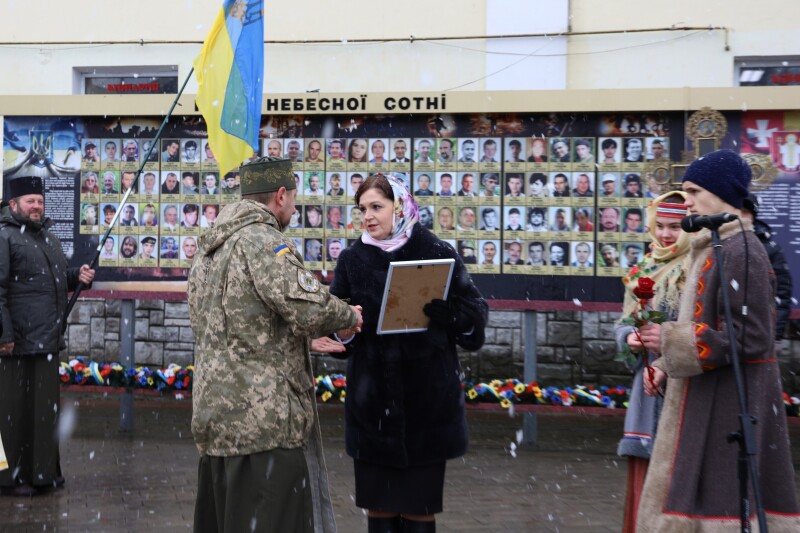 Молімося за тих, кого вже немає поруч із нами і шануймо тих, хто зараз підставляє плече. Божої вам благодаті та любові у серці”, – звернулась до присутніх Ірина Чебелюк. Також вона оголосила Подяку міського голови капеланам і військовослужбовцям, учасникам бойових дій на Сході України.