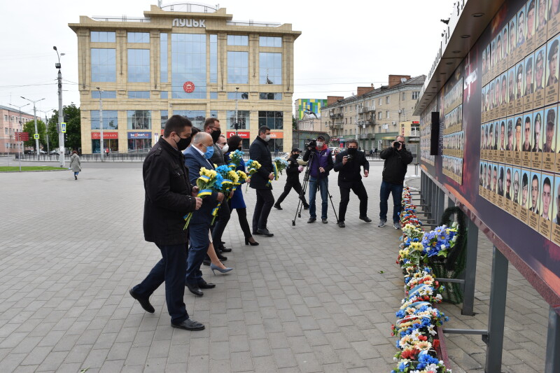 Сьогодні представники міської та обласної влади, громадськість, ветерани АТО поклали квіти до пам’ятного фотостенду Героїв Небесної Сотні та загиблих воїнів АТО на Театральному майдані та на Алеї почесних поховань у селі Гаразджа.