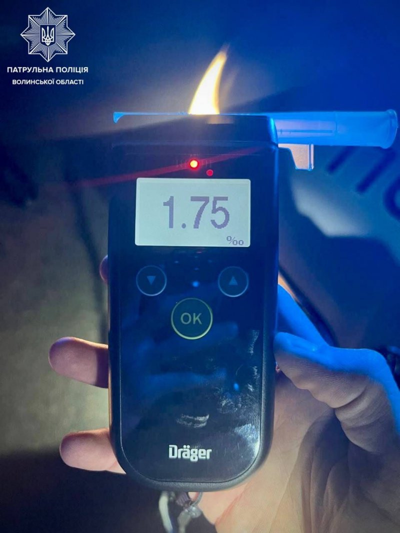 Громадянин мав ознаки сп’яніння, тому поліцейські запропонували йому пройти огляд. Результат на приладі Drager — 1, 75 проміле.